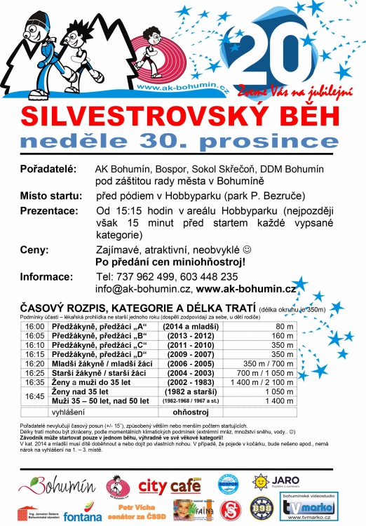 Další ročník Silvestrovského běhu se blíží, tentokrát jubilejní dvacátý, proto přesně měsíc před akcí představujeme časový program, délky tratí a partnery akce.